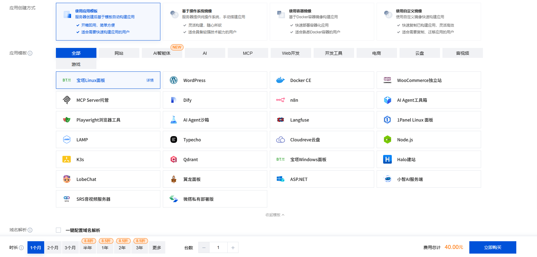 --应用一键部署:内置应用市场(Nginx/MySQL/Redis/WordPress等),支持可视化安装、版本升级及卸载,自动配置环境(如PHP+MySQL组合)。