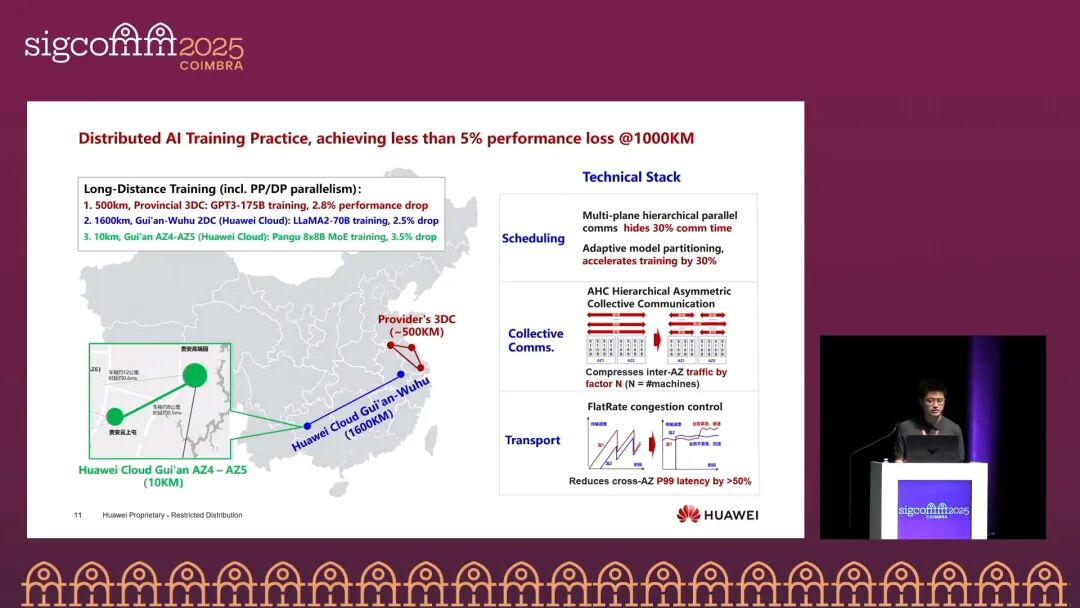 - 1600公里(贵阳-芜湖2个数据中心):LaMA2-70B训练,性能损耗2.5%。