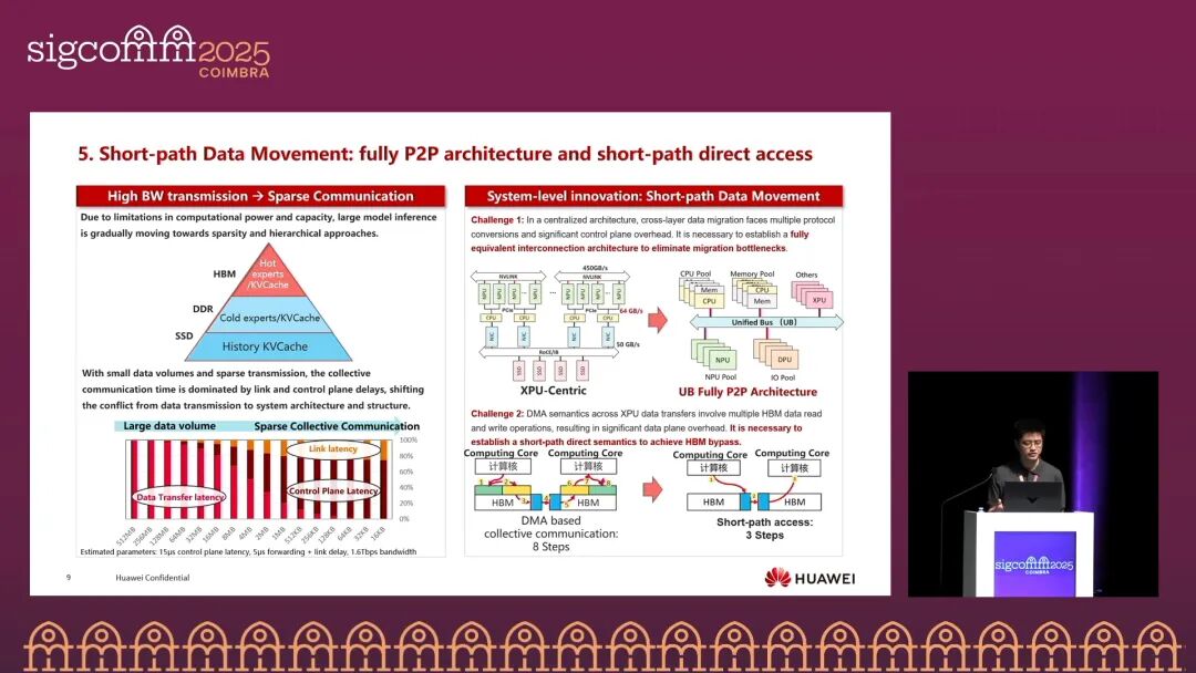 1. CPU中心架构的控制面开销:传统“以CPU为中心”的架构需多次协议转换,控制面开销显著,需构建“全对等(Full P2P)互联架构”消除数据迁移瓶颈——华为提出的“统一总线”即基于全P2P架构设计;