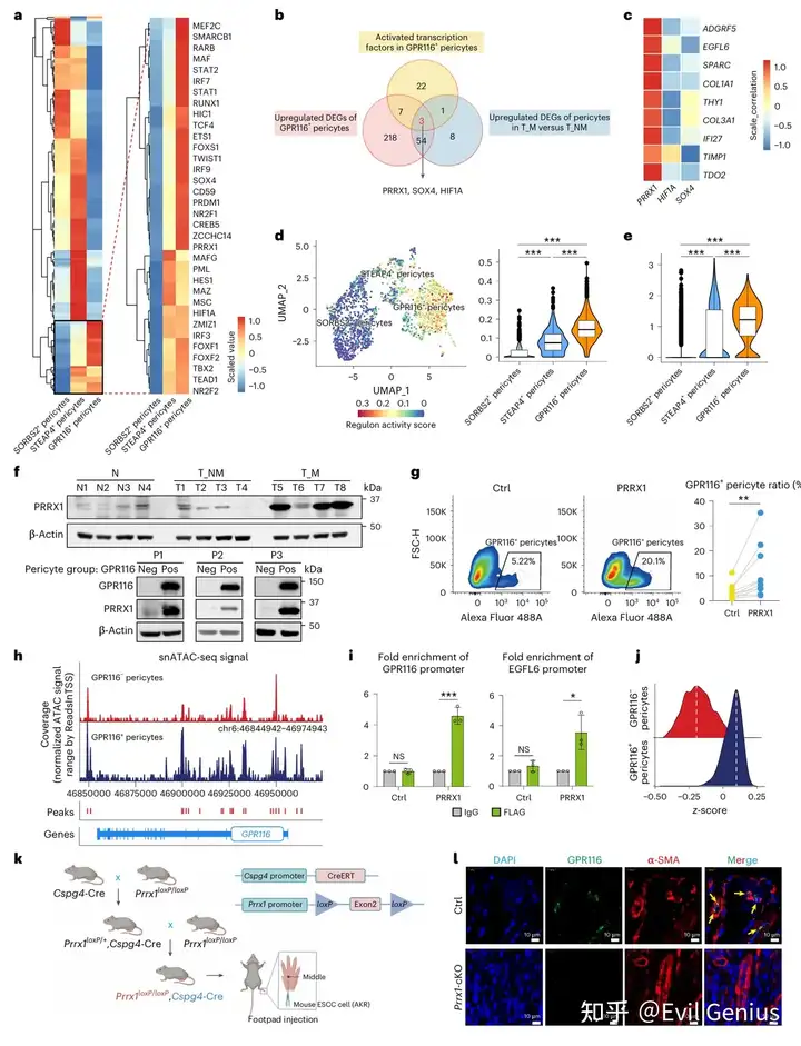 在周细胞特异性敲除PRRX1的小鼠模型中,淋巴结转移被几乎完全抑制。这强有力的遗传学证据表明,PRRX1驱动的GPR116+周细胞分化是食管鳞癌转移的关键环节。