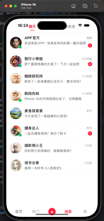 实践证明,Kuikly 的核心特性:声明式 UI、响应式数据绑定和独立的组件架构,极大地简化了开发流程。我们通过拆分页面级组件(如 WaterfallMessagePage)和可复用组件(如 MessageItemView),构建了清晰、可维护的代码结构。最终,利用 PageList 进行页面组合与状态管理,实现了流畅的应用体验。
