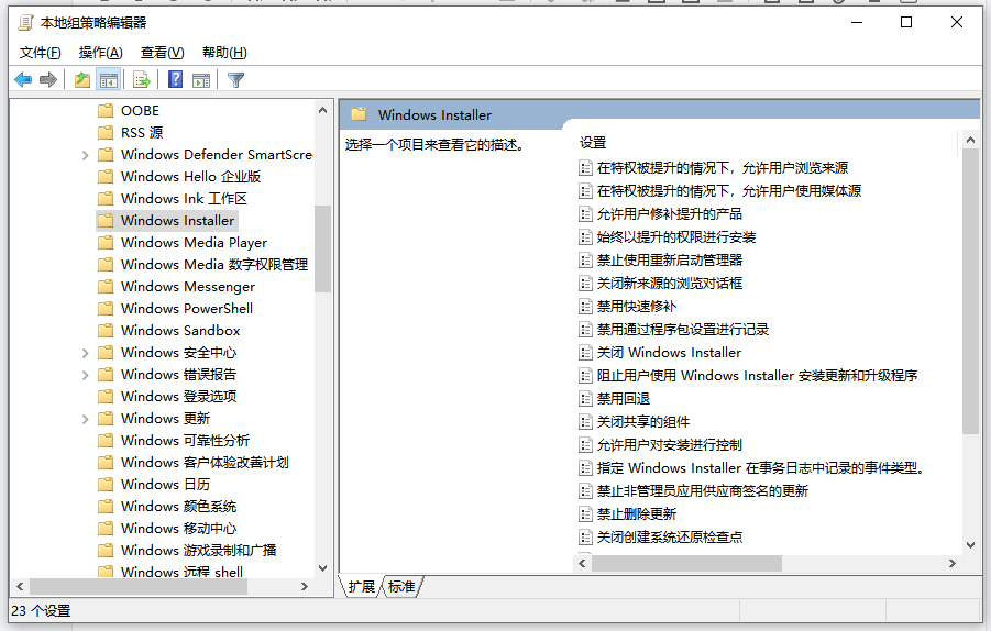 依次展开"计算机配置"→"管理模板"→"Windows组件"→"Windows Installer"。