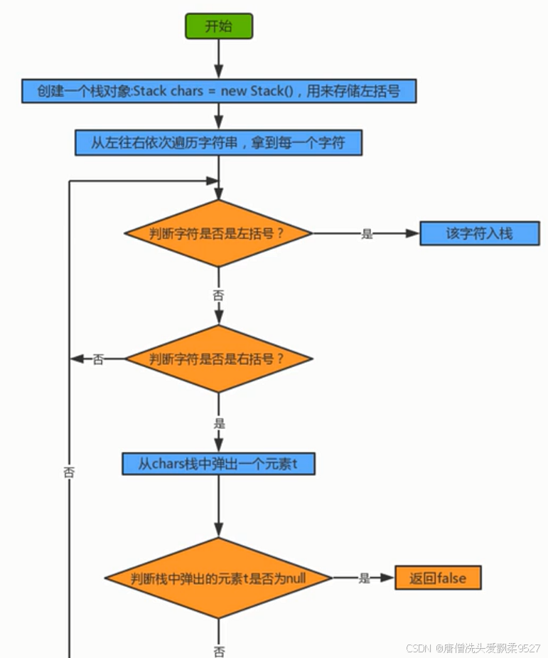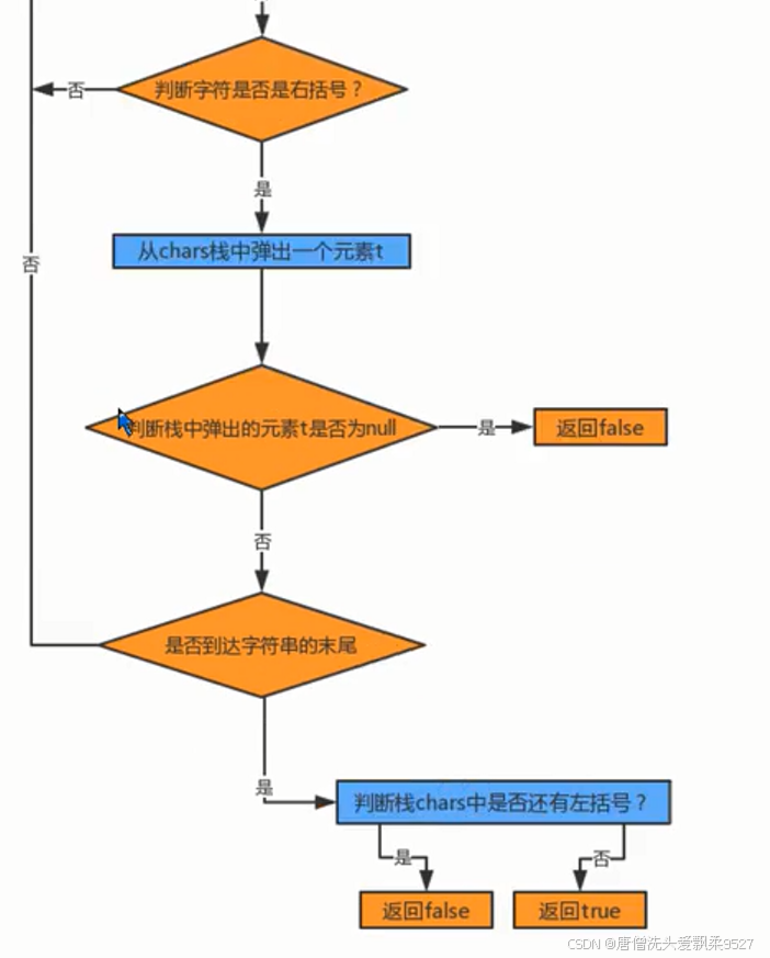 // 如果是,则从栈中弹出一个左括号,并判断弹出的结果是否为null
