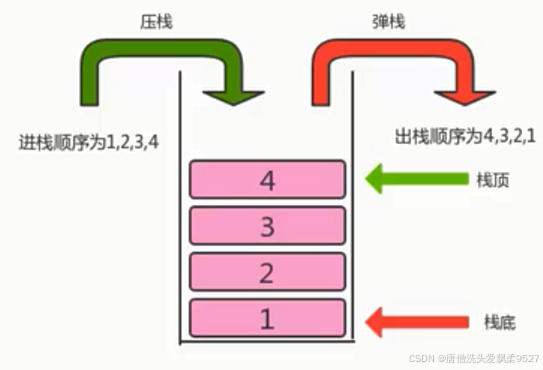 成员方法 | 1. public boolean isEmpty():判断栈是否为空,是返回true,否返回false2. public int size():获取栈中元素的个数3. public T pop():弹出栈元素4. public void push(T t):向栈中压入元素t |