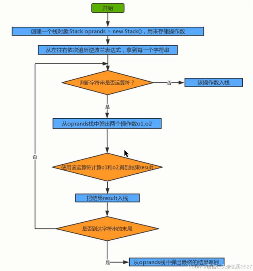 // 4. 运算符,从栈中弹出两个操作数,完成运算,运算玩的结果压入到栈中