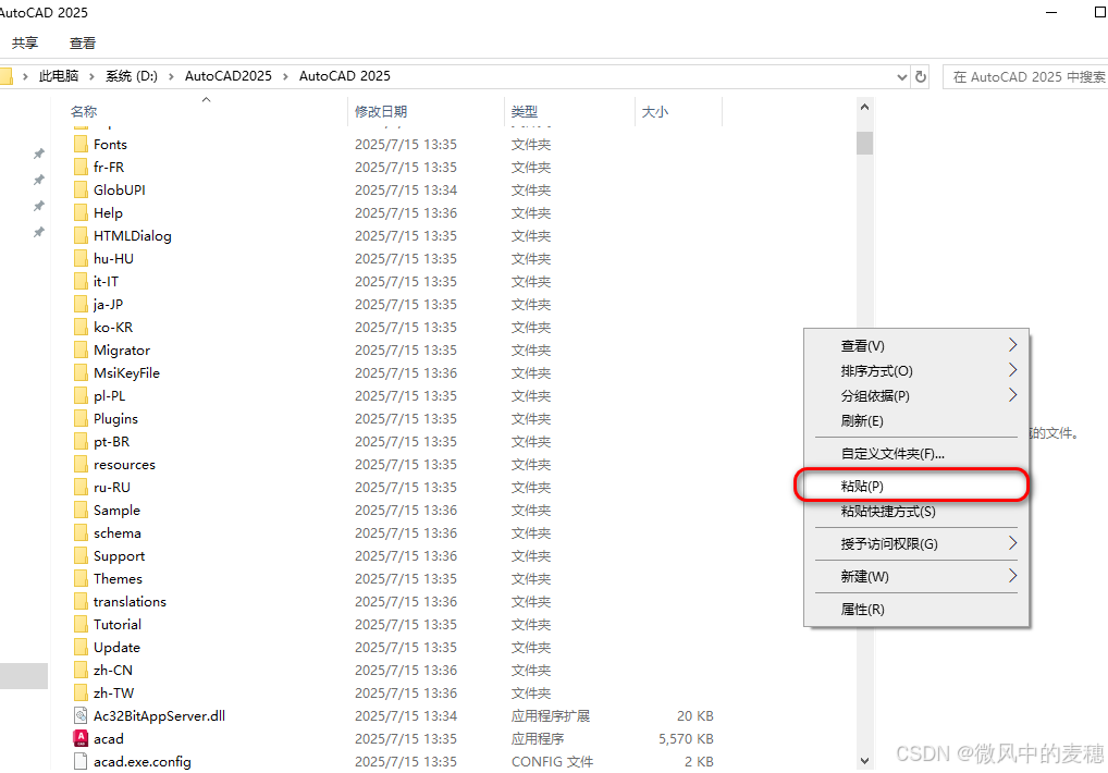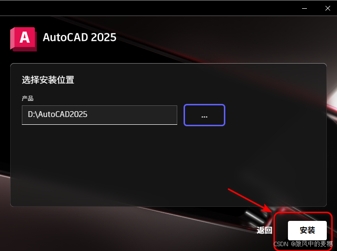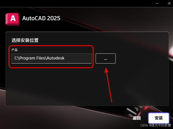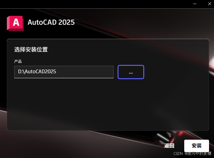 选择…更改安装位置,选择到D盘,然后在空白处鼠标右键新建–新建文件夹–AutoCAD2025(不要有中文路径):