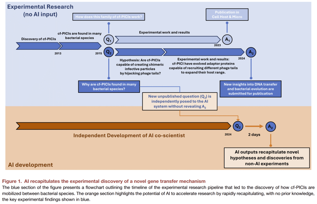 近年来会话式人工智能快速发展,显示出在生物医学发现中的巨大潜力。然而,AI是否能提出真正新颖且具影响力的科学假设仍不确定。为了探究这一问题,研究人员测试了“AI共同科学家”系统,让其面对一个长期未解的问题:cf-PICIs 这种独特的噬菌体卫星元件,常常出现在不同的细菌物种中,而传统噬菌体宿主范围较窄。研究人员此前已通过多年实验揭示其机制,但未公开,从而保证了AI无法依赖先验知识。测试的结果提供了一个独立检验AI创造力的机会。