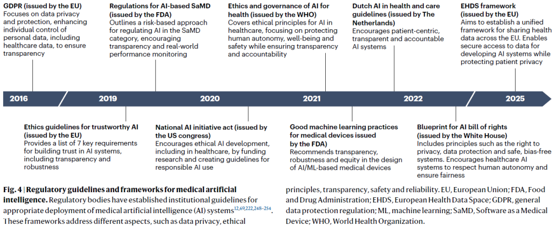 各国监管机构正在制定相关规范。美国 FDA 的“AI/ML 软件即医疗器械(SaMD)行动计划”强调模型的可追溯性与全生命周期监管。欧盟的人工智能法案也提出“高风险医疗 AI 系统必须具备透明性”。这些要求推动了开发者在模型说明文档、风险披露与用户培训中的改进。