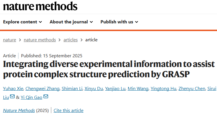 Xie, Y., Zhang, C., Li, S. et al. Integrating diverse experimental information to assist protein complex structure prediction by GRASP. Nat Methods (2025).