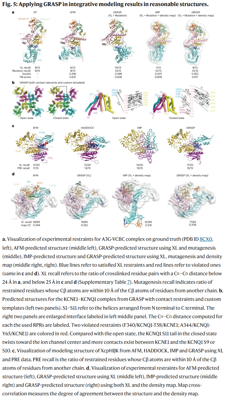研究人员进一步在交联质谱(XL)、共价标记(CL)和化学位移扰动(CSP)数据上评估 GRASP: