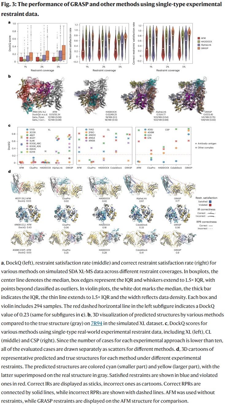 研究人员提出的 GRASP 是一种通用框架,能够在蛋白质复合物结构预测中高效整合多种实验约束。与现有方法相比,GRASP 的优势在于: