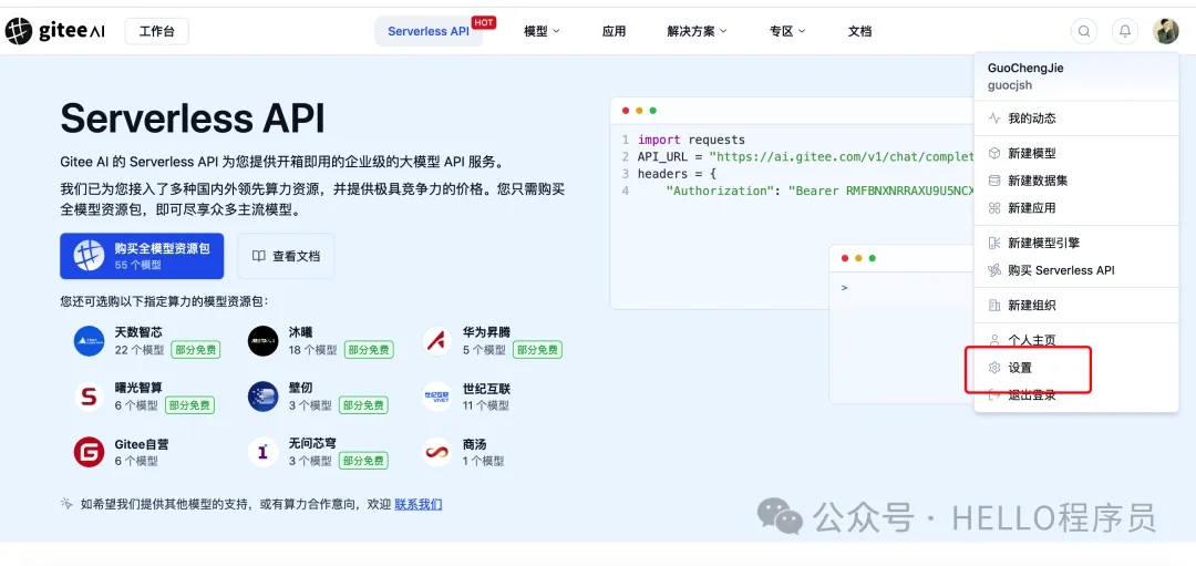 登录Gitee AI:https://ai.gitee.com/serverless-api