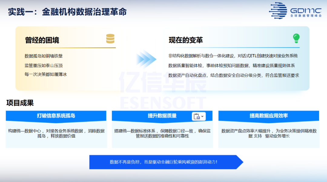 第一个例子是一个大型金融机构,他们早期做数据治理是比较保守的;立项论证的时候始终觉得投入大,见效小,迟迟没有行动。今年运用大模型相关能力以后,进行了相关成本反复的评估和经过半年左右的磨合,取得了非常好的效果。运用大模型技术去做的数据治理工作,使得在原有同等条件下面整体的成本降低25%,实施周期缩短30%。