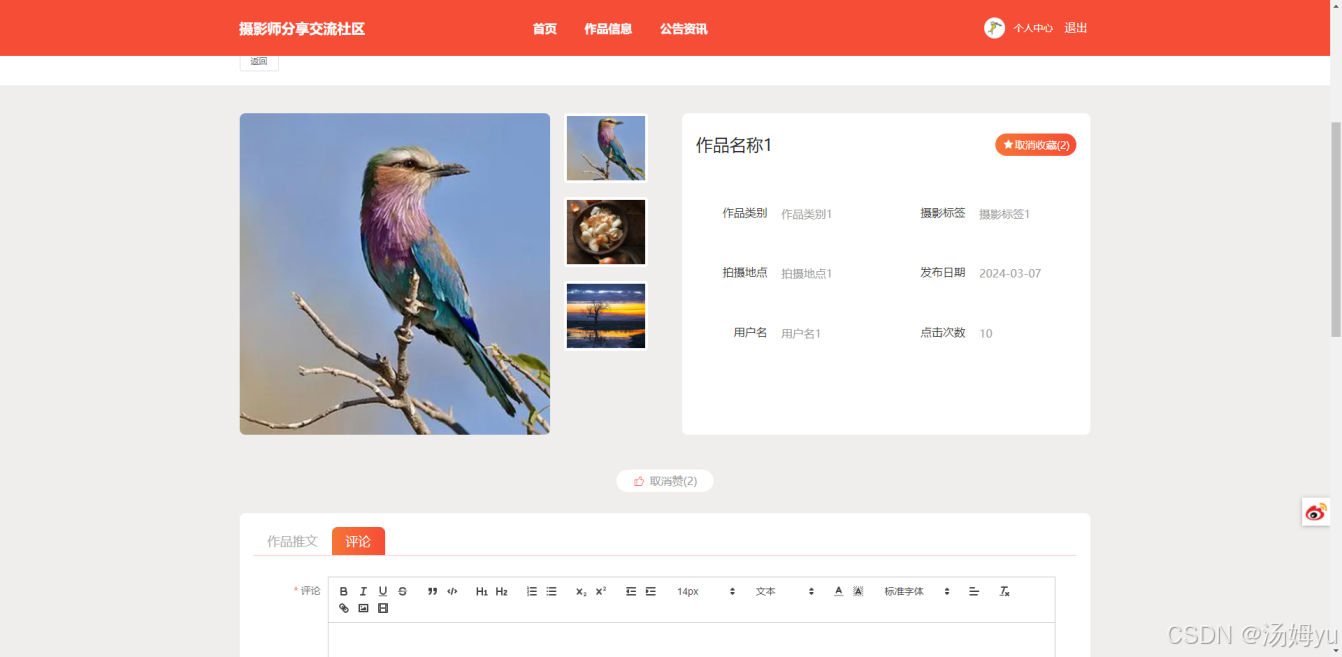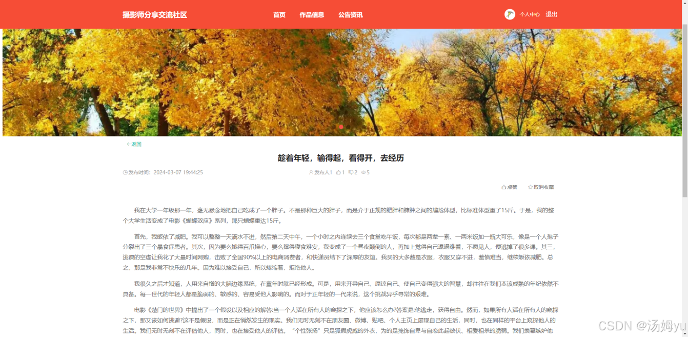 该系统的建立填补了摄影师社区领域的空白,为摄影爱好者提供专业、高效的交流平台。其次,通过该平台,摄影师们可以更加方便地分享作品、交流经验、学习技术,从而提升自身的摄影水平和创作能力。此外,该系统还能够为摄影师们搭建起合作和商业机会的桥梁,促进摄影产业的发展和创新。总之,基于Spring Boot的摄影师社区平台系统不仅对摄影师个体具有重要意义,也对整个摄影行业的发展和进步具有积极的推动作用。