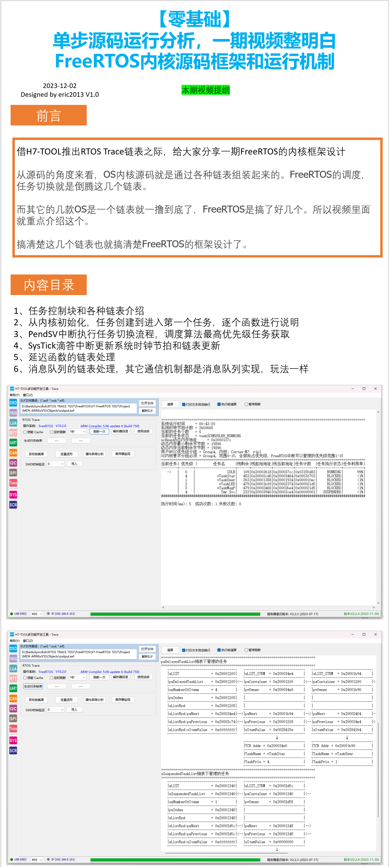 搞清楚这几个链表也就搞清楚FreeRTOS的框架设计了。本期视频教程采用调试状态,逐字逐句源码分析方式,录制了一期视频教程,方便大家更好掌握RTOS
