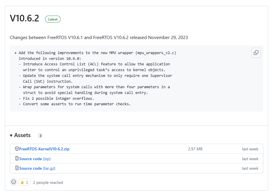 https://github.com/FreeRTOS/FreeRTOS-Kernel/releases