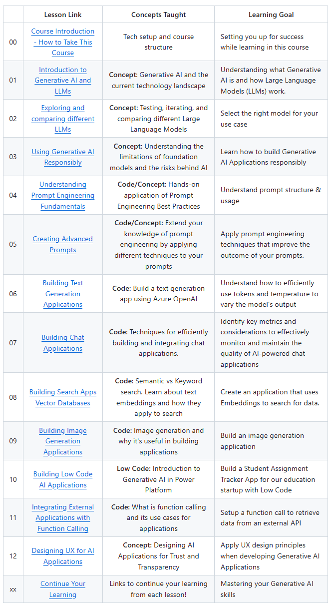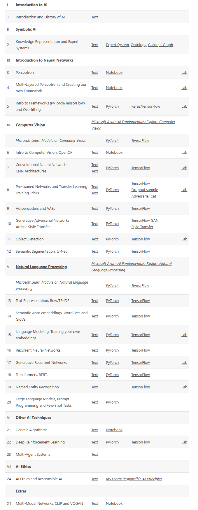 https://microsoft.github.io/AI-For-Beginners/ https://github.com/microsoft/generative-ai-for-beginners