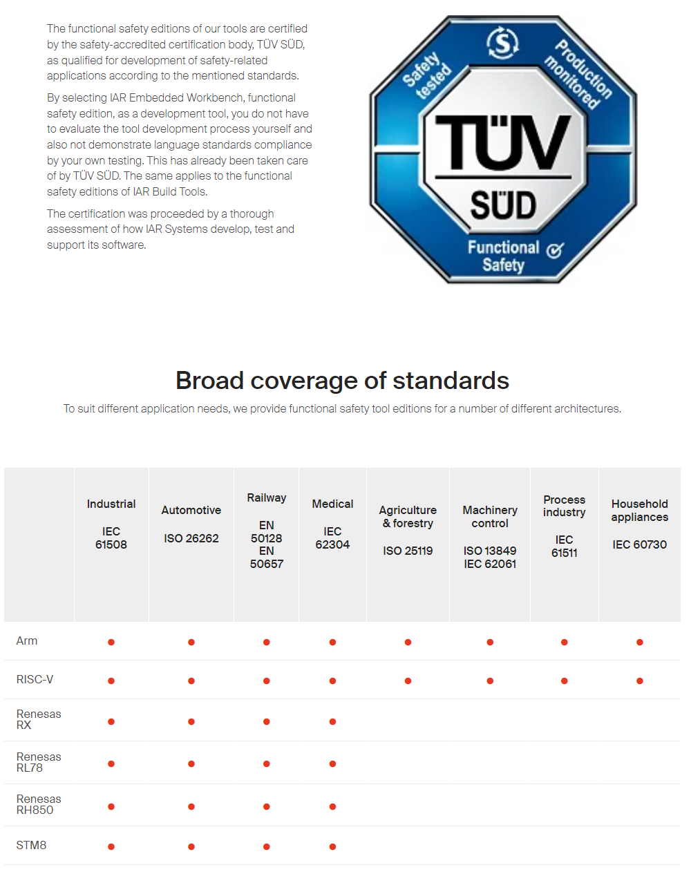 5、IAR推出功能安全认证版本V9.50.3,且静态分析工具C-STAT也通过了TUV安全认证