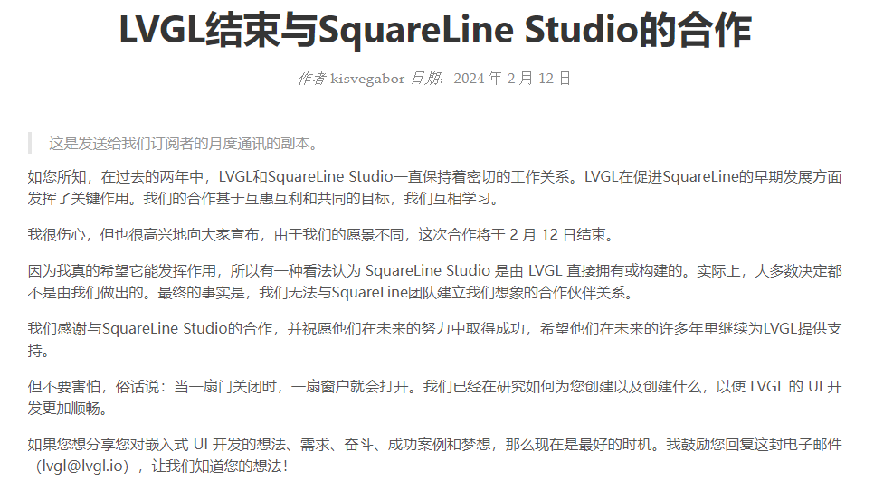 SquareLine Studio回应终止与LVGL的合作后,未来的发展方向