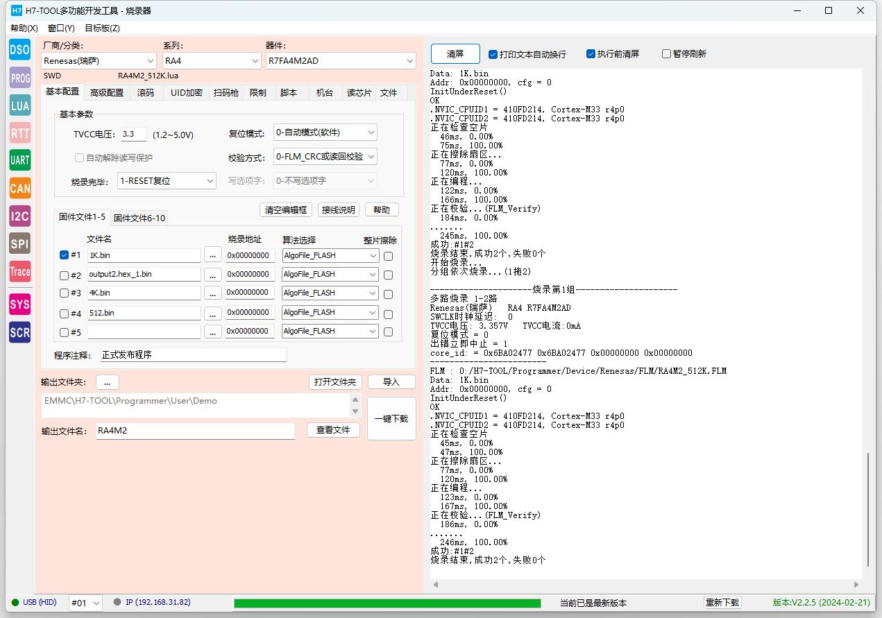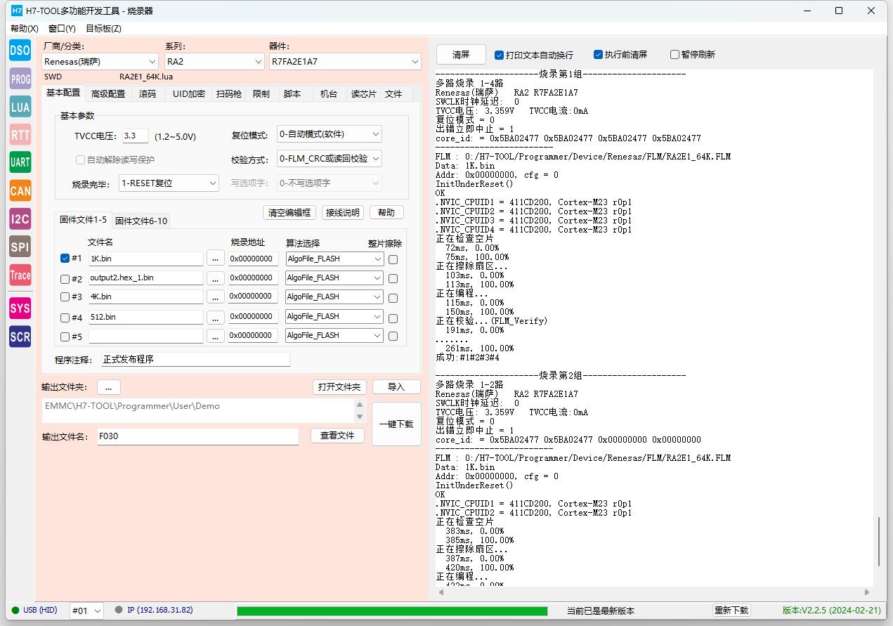 H7-TOOL脱机烧录1拖16,瑞萨RA2E1和RA4M2, H750+QSPI,F030等,方便大家测试参考
