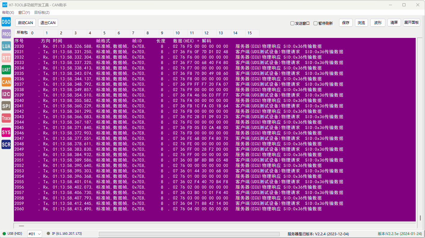1、大量嵌入式书籍免费下载,无需注册账号,直接下载 2、EMF 2024准备的电子胸牌 3、CNC电机同步视频 4、Hackaday举行的智能家居比赛 5、CMSIS-FreeRTOS升级至V1.11 6、嵌入式Swift语言编程单片机 7、Hex编辑器Imhex新版打开后很拉风 8、最新的emWin6.38发布,配套最新的AppWizard V1.44,这个库版本支持MDK,IAR和GCC,不限制IC厂家使用 9、各类芯片拆封内部构造图 10、STM32U0和STM32H7RS的HAL库发布 11、H7-TOOL本周工作进展 (1)2024版H7-TOOL操作手册PDF已经分享发布。 (2)H7-TOOL脱机烧录1拖16,瑞萨RA2E1和RA4M2, H750+QSPI,F030等,方便大家测试参考 (3)高级玩法,H7-TOOL的LUA小程序访问目标芯片AP和DP调试寄存器,新增并解决STM32H5的脱机烧录问题,不容易,不少弯弯绕 (4)全力UDS统一诊断服务解析和UDS Bootloader专题视频教程