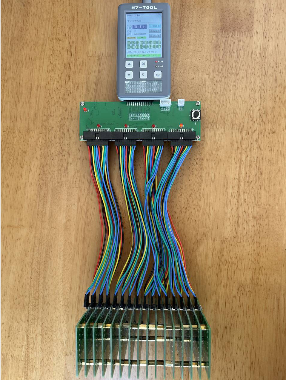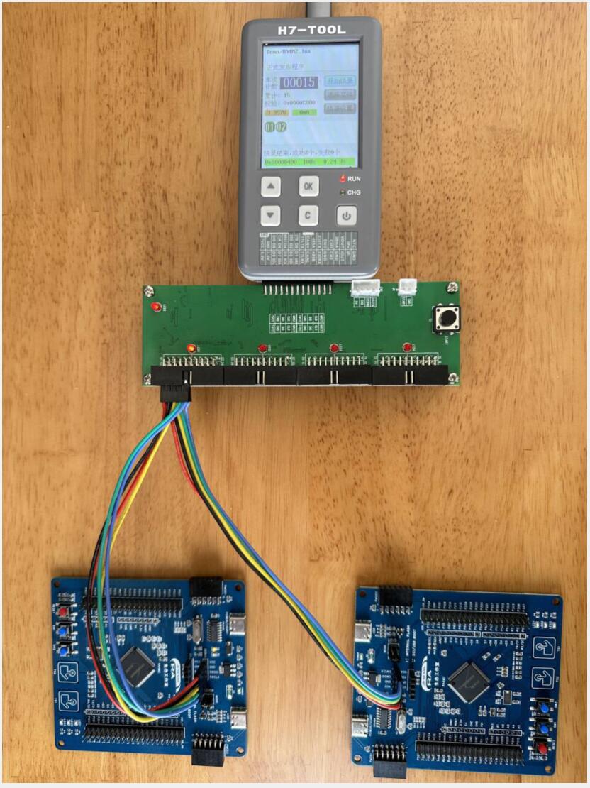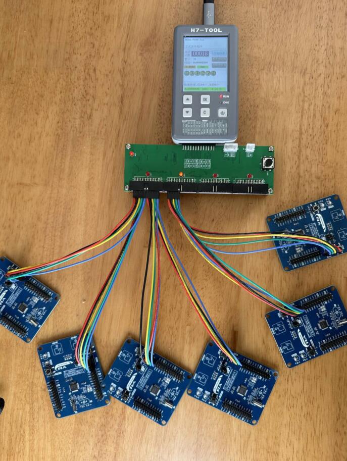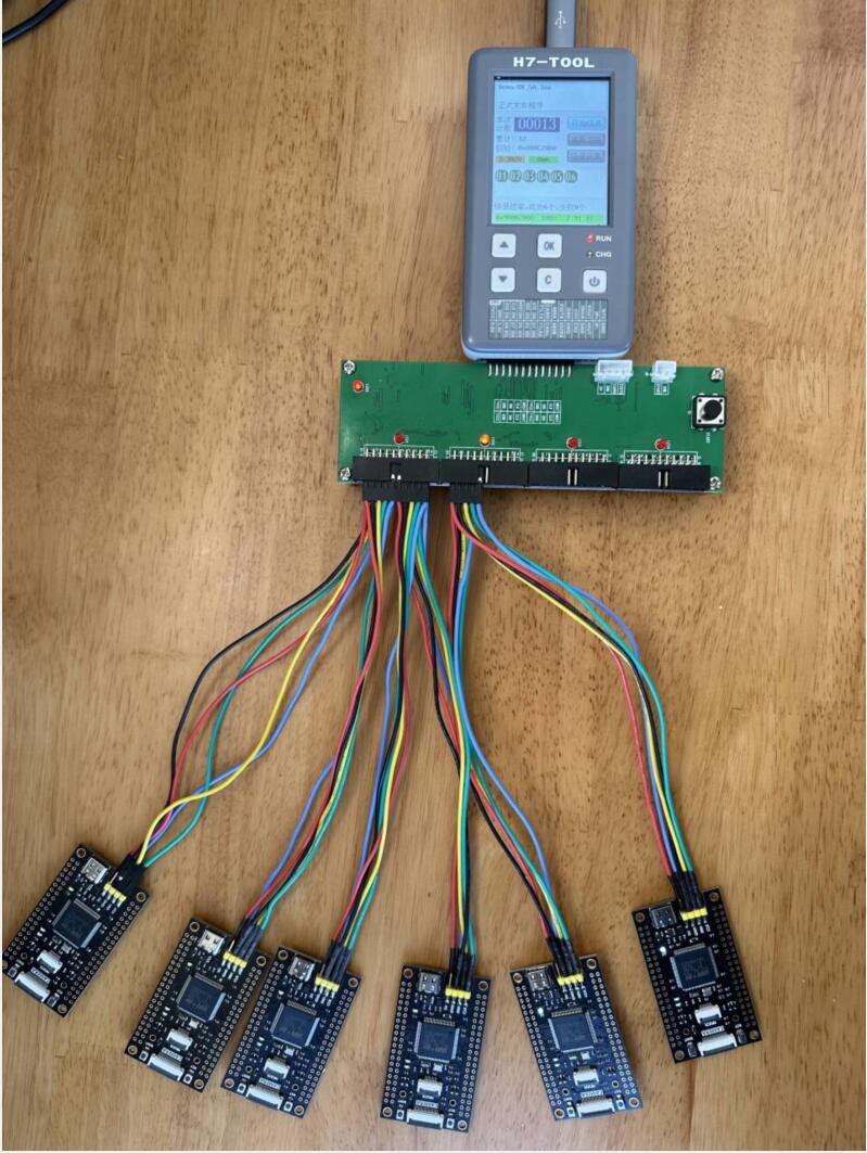 三、我们自己的H7开发板是用H7-TOOL的1拖16生产的,这里为了更好的展示问题,从网上搞了6套其他型号的H7板子测试。