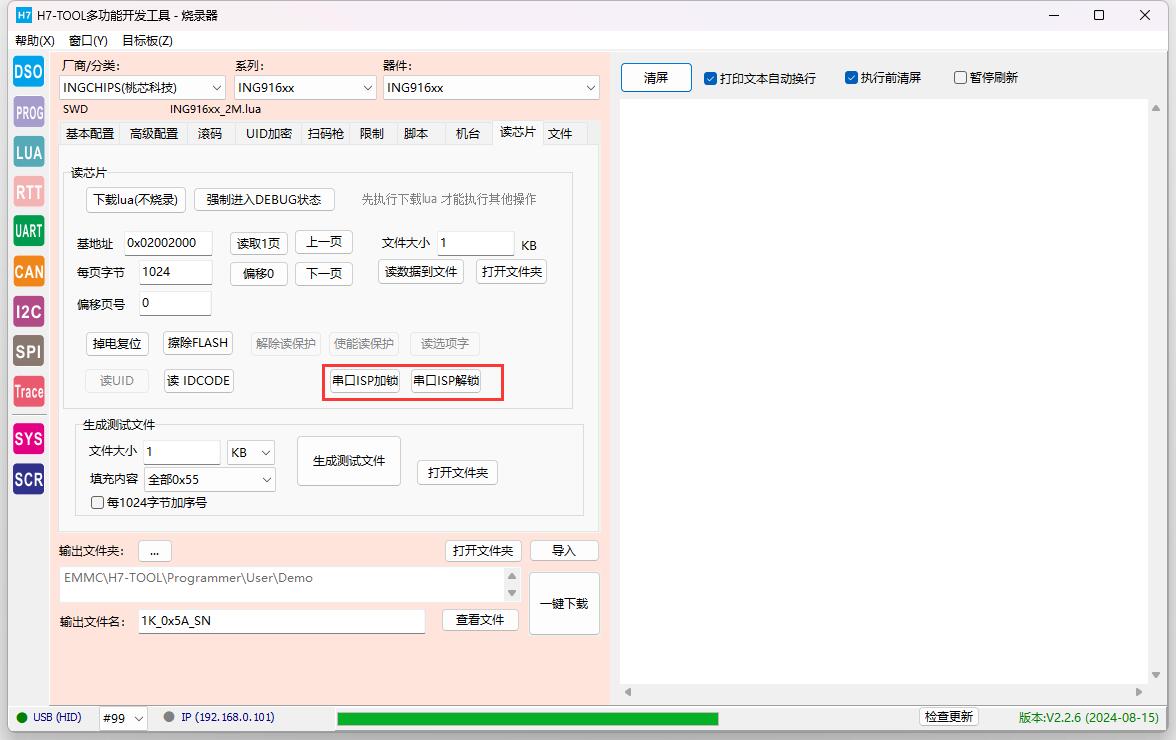 (4)界面支持ISP串口解锁和加锁,目前仅做了ING916xx