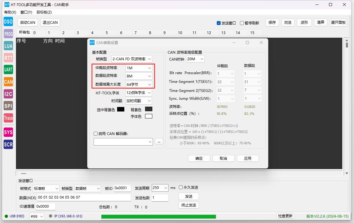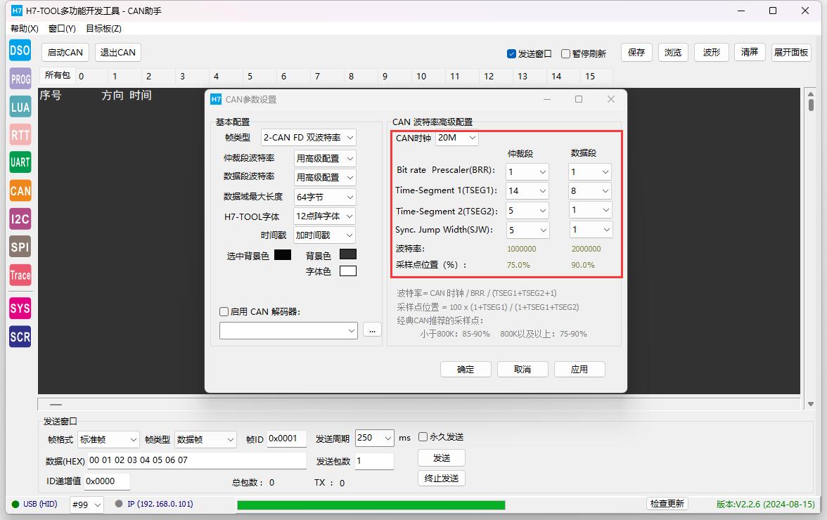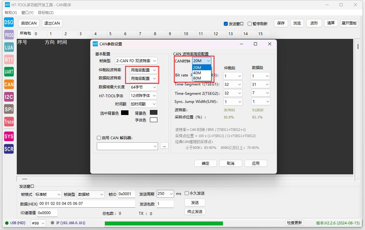 通过此贴分享的CAN/CANFD波特率计算软件,用在H7-TOOL高级配置的手动添加非常方便,自己的程序代码也可以方便设置。 https://www.armbbs.cn/forum.php?mod=viewthread&tid=124911