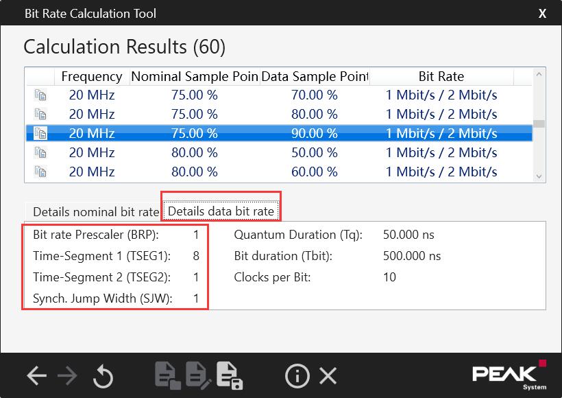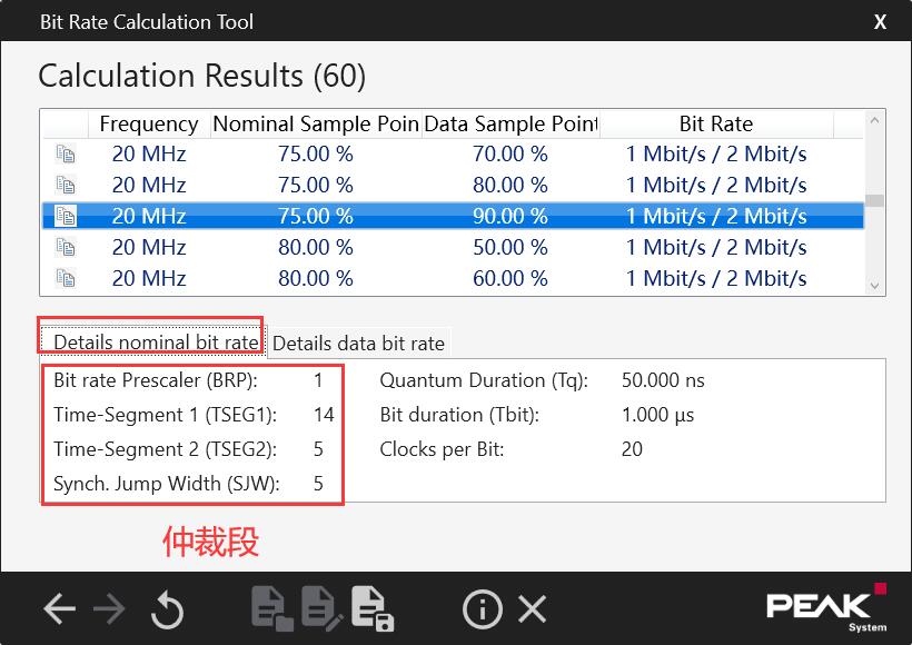 比如使用PEAK System,主时钟我们使用的20M,仲裁速度1M,通信速度2M