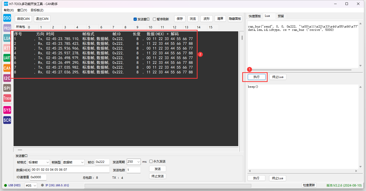(3)H7-TOOL的LUA小程序教程第13期:CAN/CANFD总线操作说明,支持和CAN助手同时使用,方便实现各种复杂逻辑