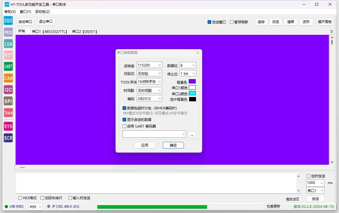 5、串口助手,每行最大字符由120调整为256.