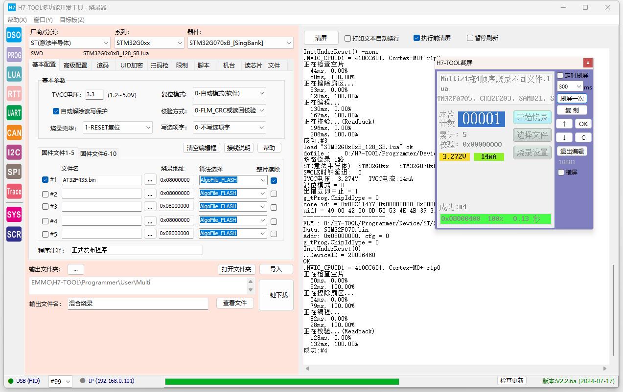 (1)H7-TOOL混合脱机烧录以及1拖4不同的通道烧录不同的程序操作说明