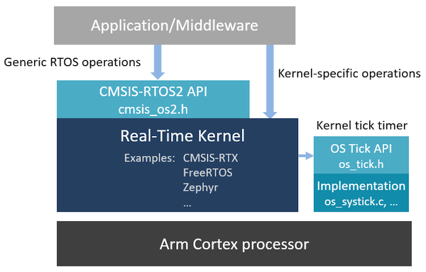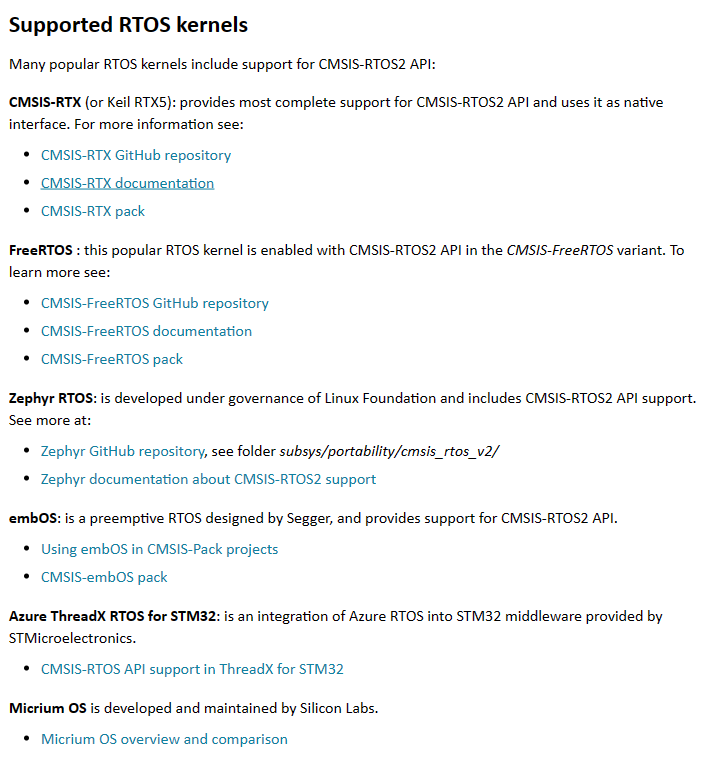 历时十年,CMSIS-RTOS封装层终于有点样子,陆续已经支持了RTX,FreeRTOS,Zephyr,ThreadX,embOS,uCOS等