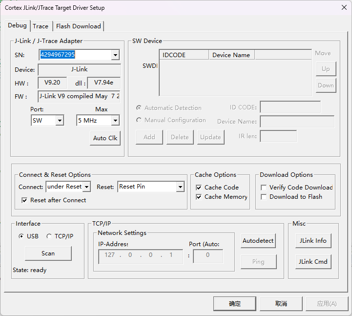 (1)解决办法1:接硬件复位,并且这里选择硬件复位,可以反复烧录,烧录的程序是100ms复位的固件