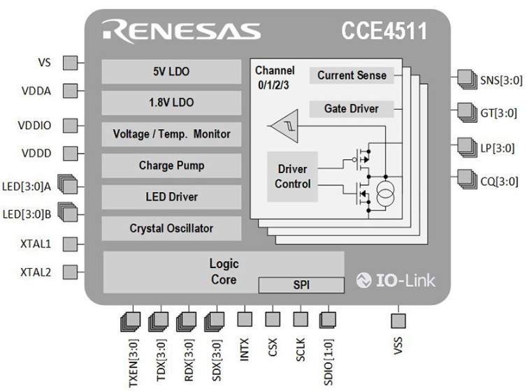 2、瑞萨推出4 通道 IO-Link 主收发器,带集成帧处理程序