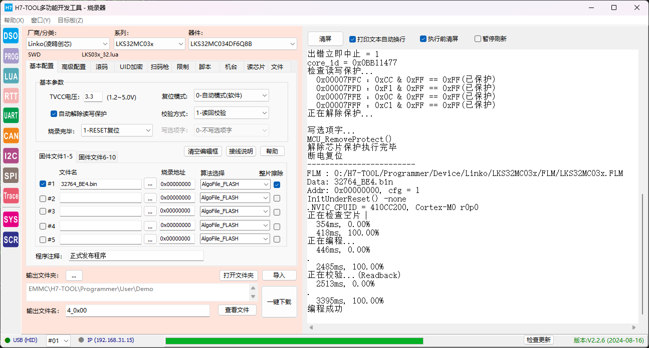 (1)为凌欧LKS32MC03x制作读写使能和解除算法,支持在线烧录和脱机烧录使用