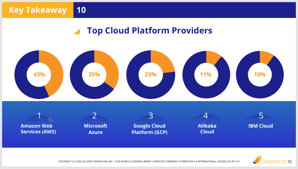 1、Eclipse 基金会分享的一项市场研究报告分析 Jakarta EE 用户的TOP5云端厂商