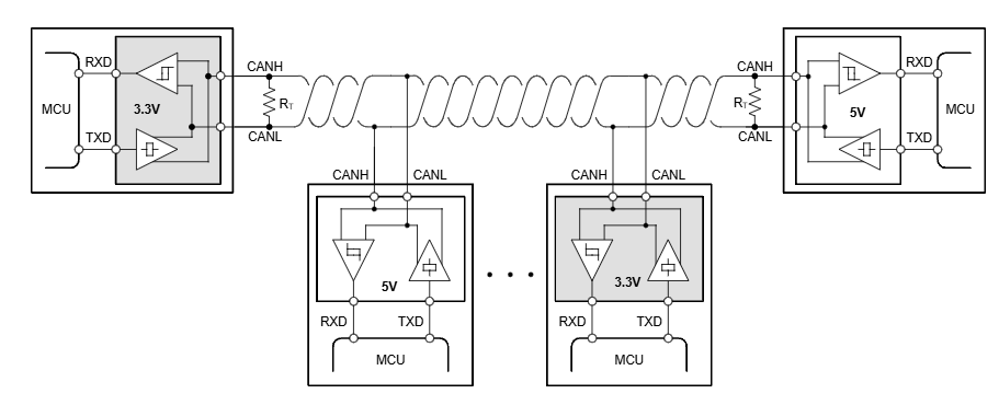 TI 的 3.3V CAN 系列成功通过国际标准化组织 (ISO) 16845-2 测试。 测试涵盖所有 3.3V 收发器的同构网络和一个 异构网络,其中 16 个 CAN 节点中有 4 个是 3.3V 收发器和 其余 12 个 CAN 节点是其他三个行业认可的 5V CAN 的混合收发器
