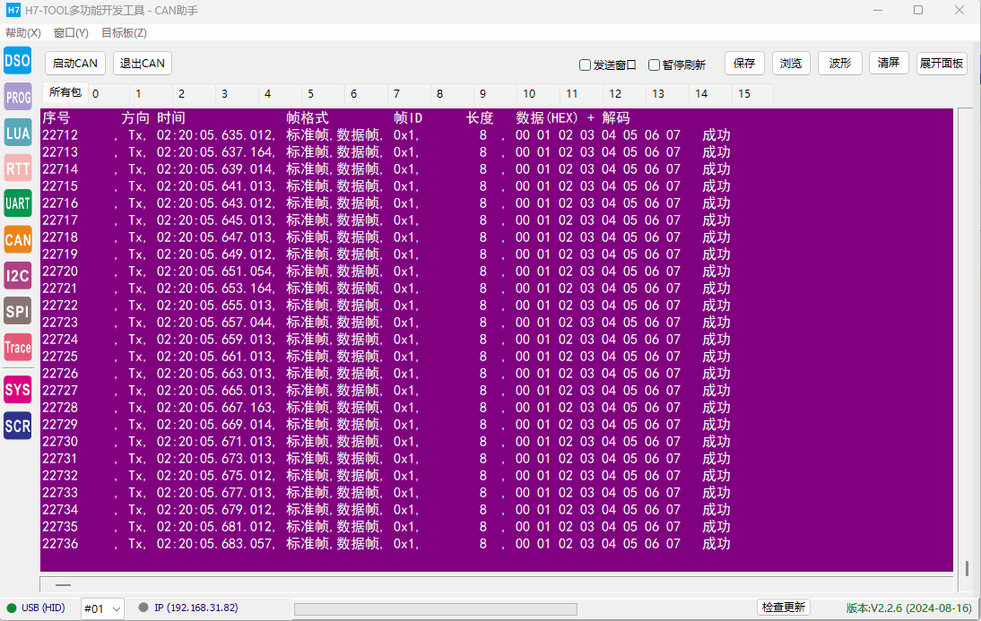 4、H7-TOOL的CAN/CANFD助手增加个帧发送成功标识支持,继续加强完善功能细节
