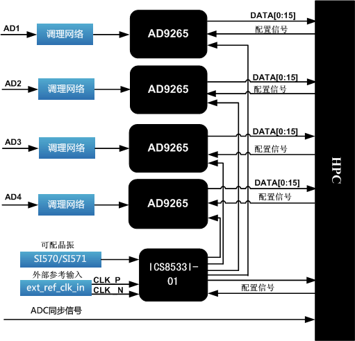 该板卡可实现4路16bit 125Msps AD 功能,是xilinx开发板设计的标准板卡。FMC连接器是一种高速多pin的互连器件,广泛应用于板卡对接的设备中,特别是在xilinx公司的所有开发板中都使用。该AD,DA子卡模块就