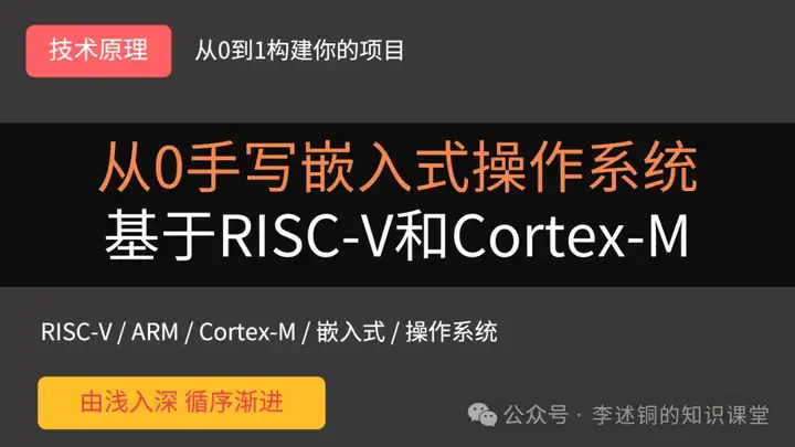 本课程以RISC-V和ARM Cortex-M两大类流行处理器内核为基础,带你从零开始手写完整嵌入式操作系统。