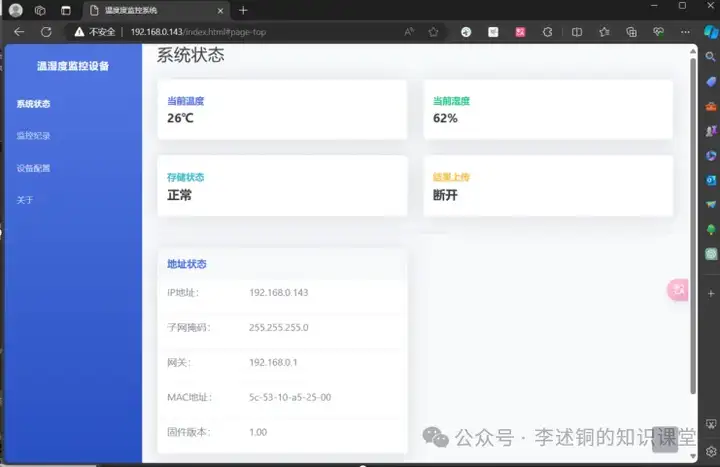 该设备能够实时采集环境温湿度数据、记录采集时间、存储至SD卡,并将数据上传到指定服务器。用户可以通过电脑或手机浏览器访问,查看历史采集数据,实现远程监控。
