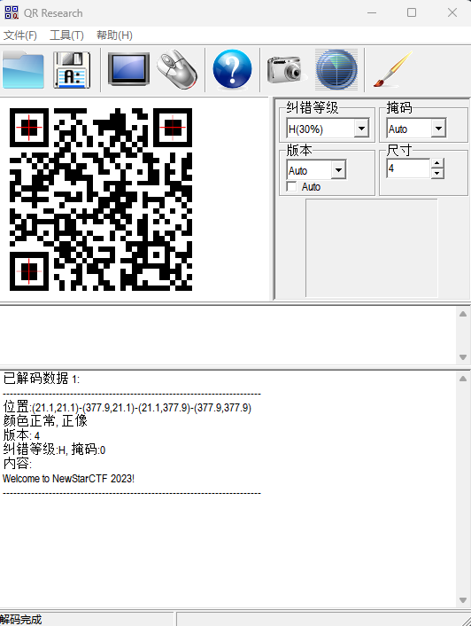 题目压缩包内只有一张png图片,是一张二维码,用qr_research扫描后没有什么有用信息。
