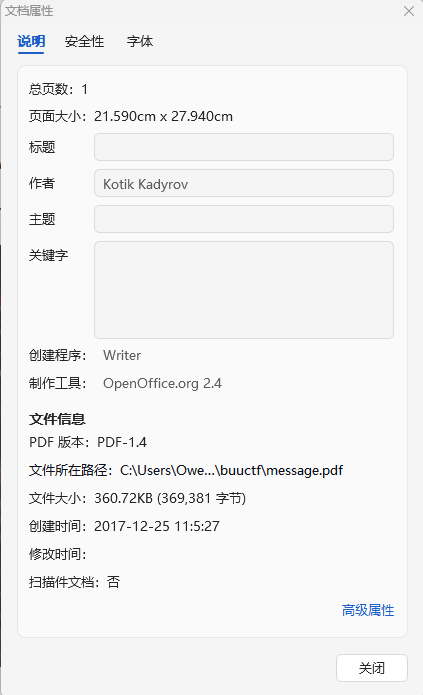 city name我们已经知道了,接下来就需要知道这个人的全名,打开pdf后,通过文档属性得到了作者具体名称。