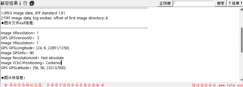 Flag format is : CFI{Firstname_Lastname_of_City}我们的目标是找出这个人的信息以及所在位置,然后用信息组成flag。题目给了两个文件,一个jpg图片,一个pdf文档。先看jpg图片,放进随波逐流工具后发现图片存在一个GPS位置信息。