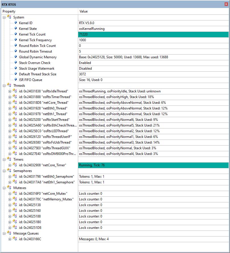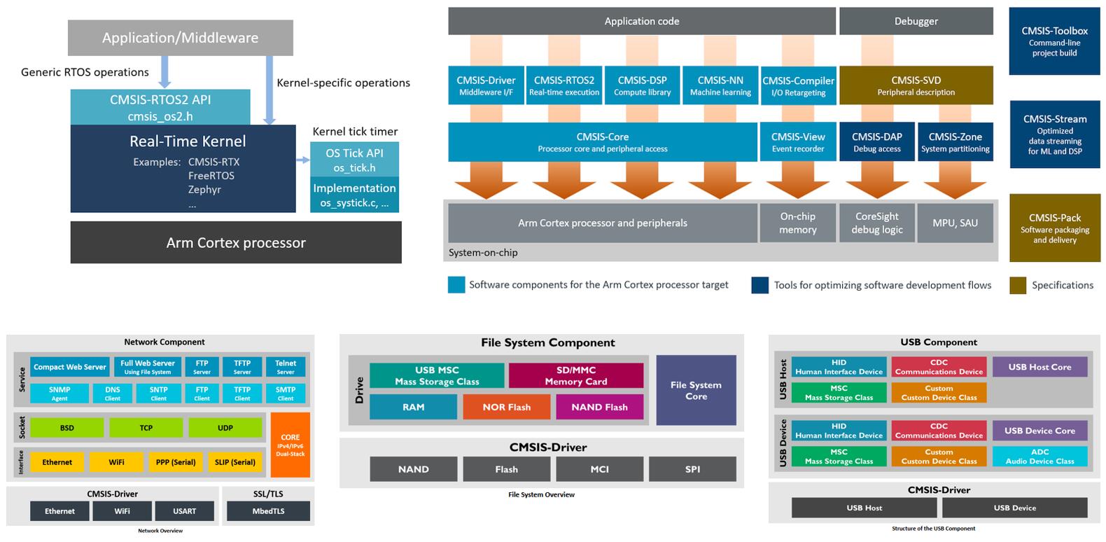 1、本次工程集成了CMSIS6.10,CMSIS-Driver,CMSIS-DSP,CMSIS-Viwer,CMSIS-Compiler,CMSIS-RTOS V2,CMSIS-FreeRTOS,CMSIS-RTX,CMSIS-MbedTLS等,全部采用的当前最新版。 2、网络协议栈,单网络协议栈同时管理DM9000和DM9162双网口。 3、文件系统,同事管理外挂U盘,NAND Flash和SD卡。 4、USB协议栈,RL-USB同时外挂USB FS和USB HS两个USB外设,USB FS接口用于外接电脑,实现SD卡和NAND模拟U盘,USB HS用于外挂U盘设备。 5、加密算法库使用的CMSIS-mbedTLS。 6、BSP外设驱动,部分是采用的CMSIS-Driver,其他都采用我们自己设计的。