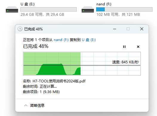 下面是H7板子做服务器,电脑端从H7做的服务器下载速度6.xMB/S