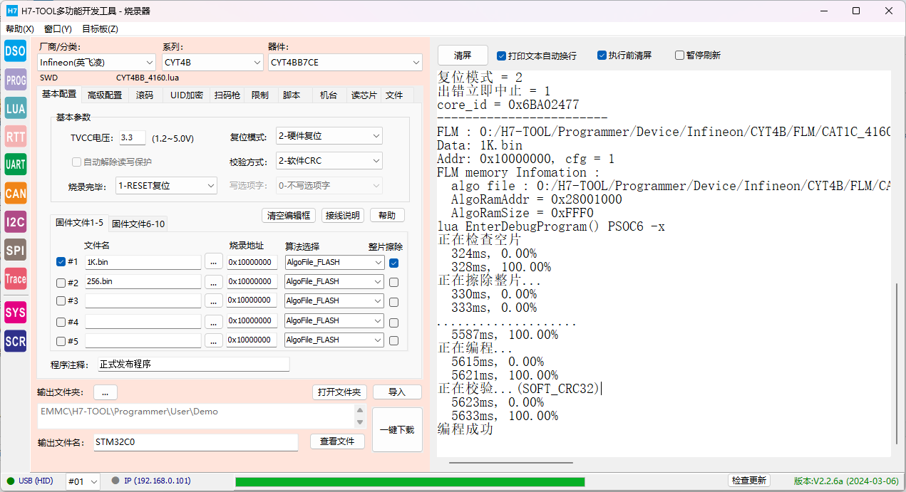 详细说明:时隔半年,再次死磕,成功搞定H7-TOOL脱机烧录英飞凌车规级M7多核芯片CYT4B