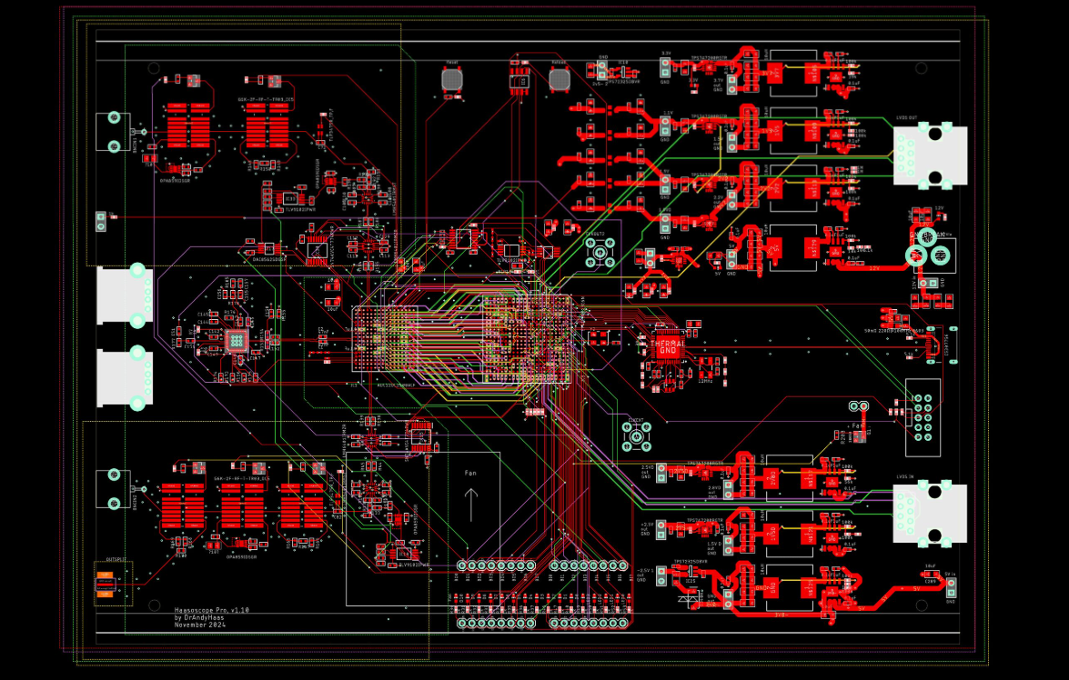 这个是早期Haasoscope开源项目的升级版,不过这次升级与之前版本已经没有任何关系,只是示波器名字没变。但性能是质的飞跃