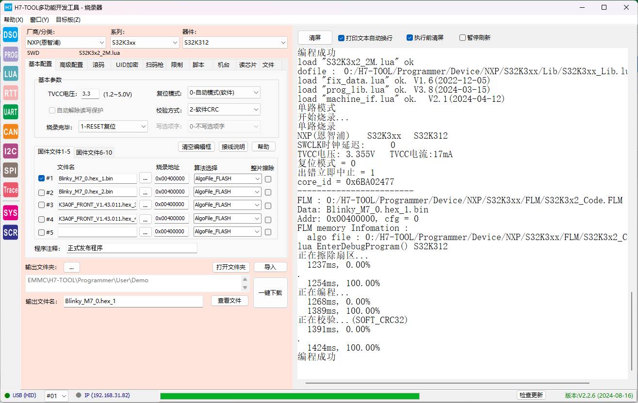 (1)增加NXP车轨芯片S32K312脱机烧录支持